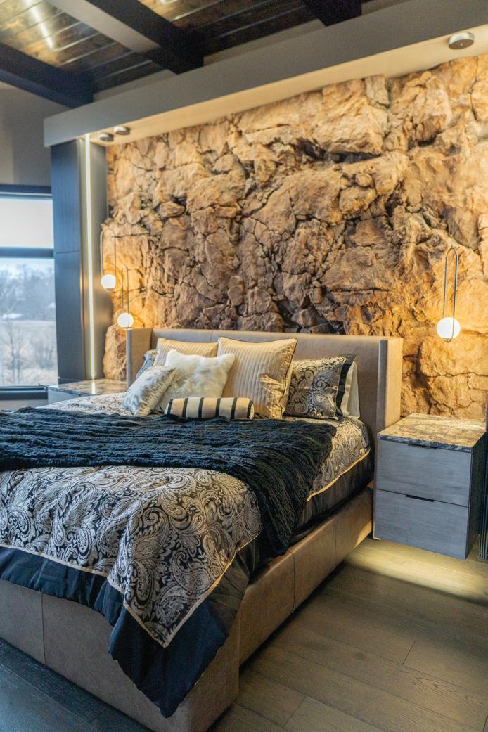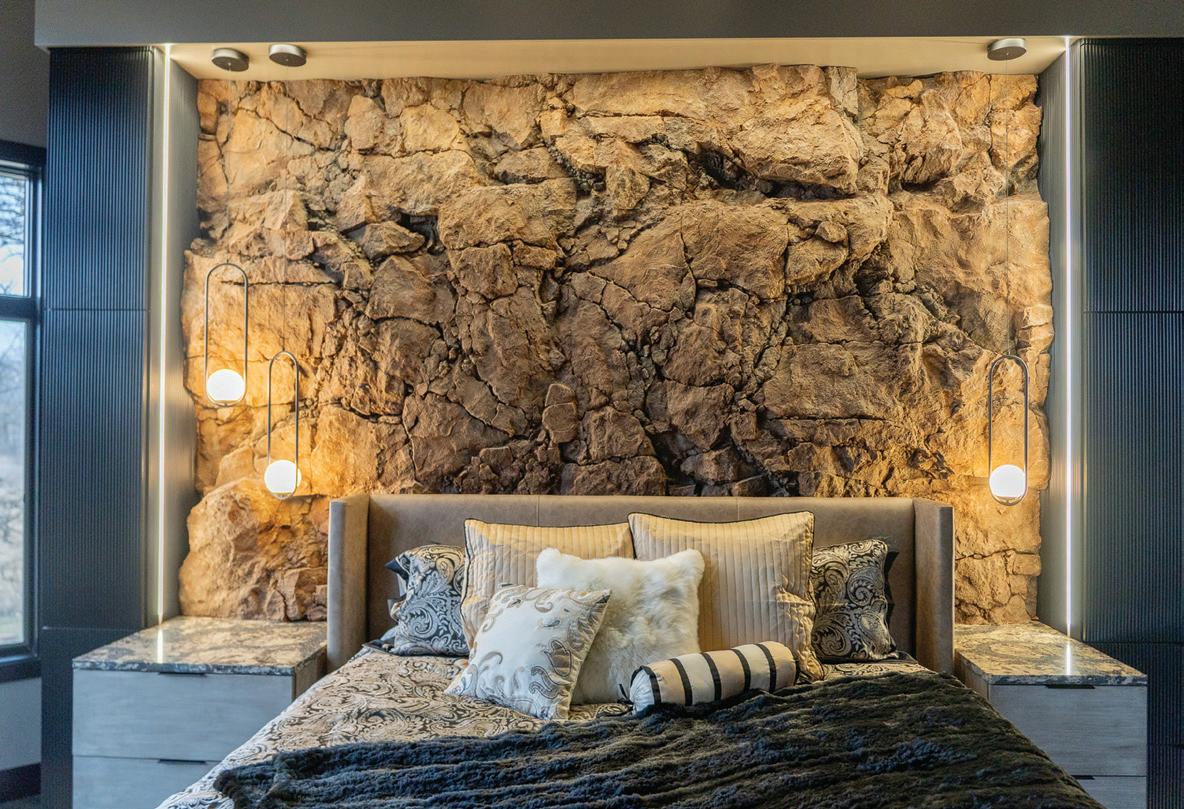 One of the first challenges Roxanne had to navigate was the vision for a rock wall in the bedroom. A quick online search will offer plenty of results such as pre-forms and 3D panels, but all of these
