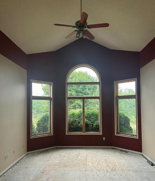 The second priority was replacing the honey oak trim and doors with updated, modern colors and tones. Roxanne's solution was integrating black trim, and incorporating more neutralcolored woods. The homeowners also wanted hardwood floors to replace the carpeting to add a level of luxury to the space.
