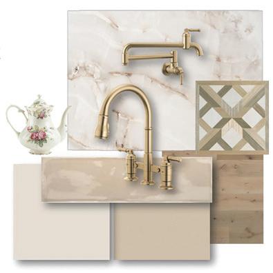Moving into the bathroom demos, Accent offers a wide variety of materials and styles to fit your needs, from porcelain and quartz countertops to nickle and brass hardware. For homeowners looking for some color and "mood" direction, Accent Interior Designer Jessica Holen recommends warmer "blonde" tones, helping spaces feel cozy and inviting.