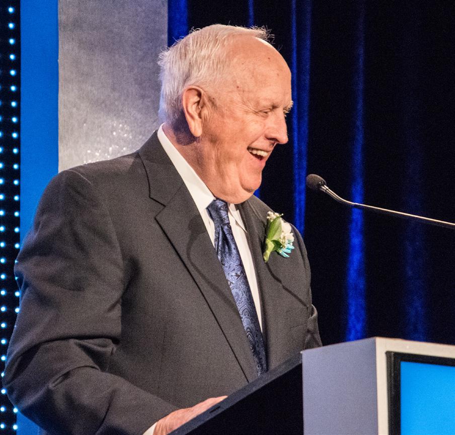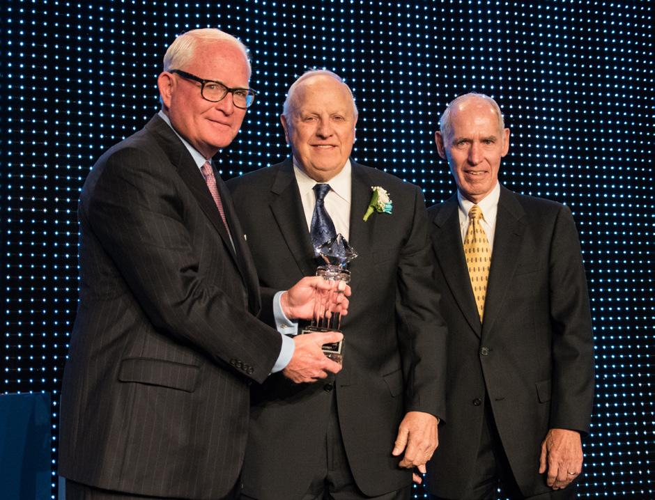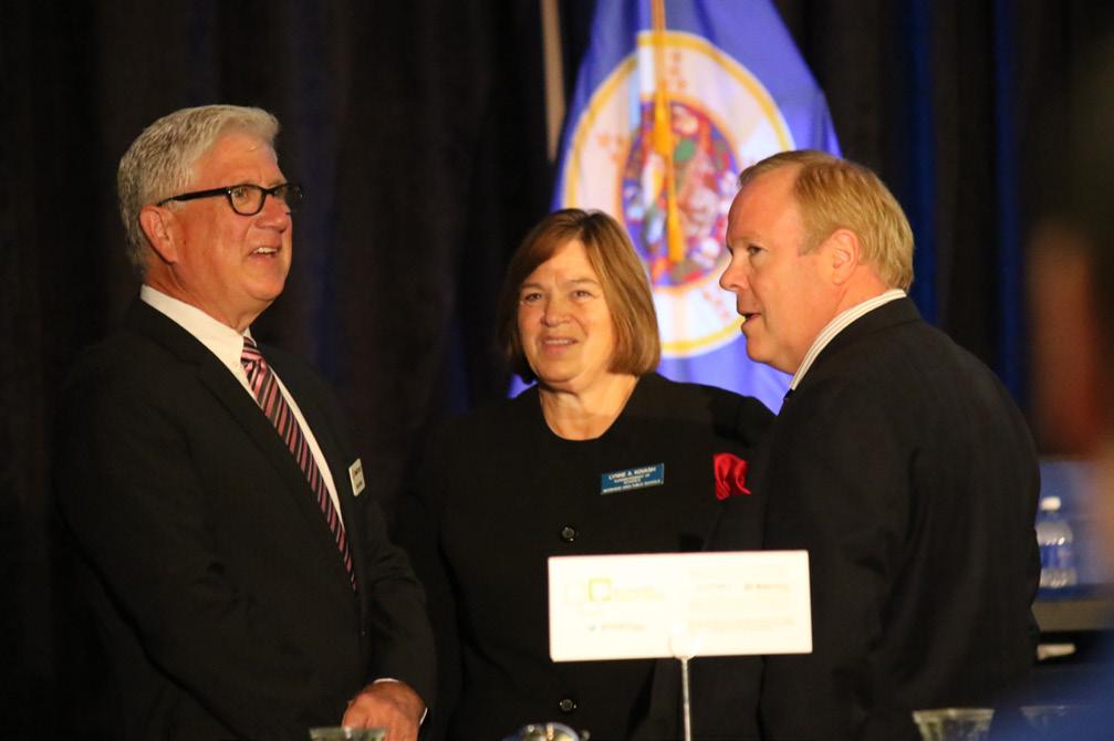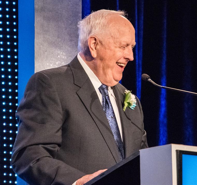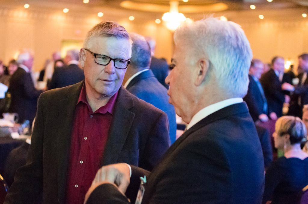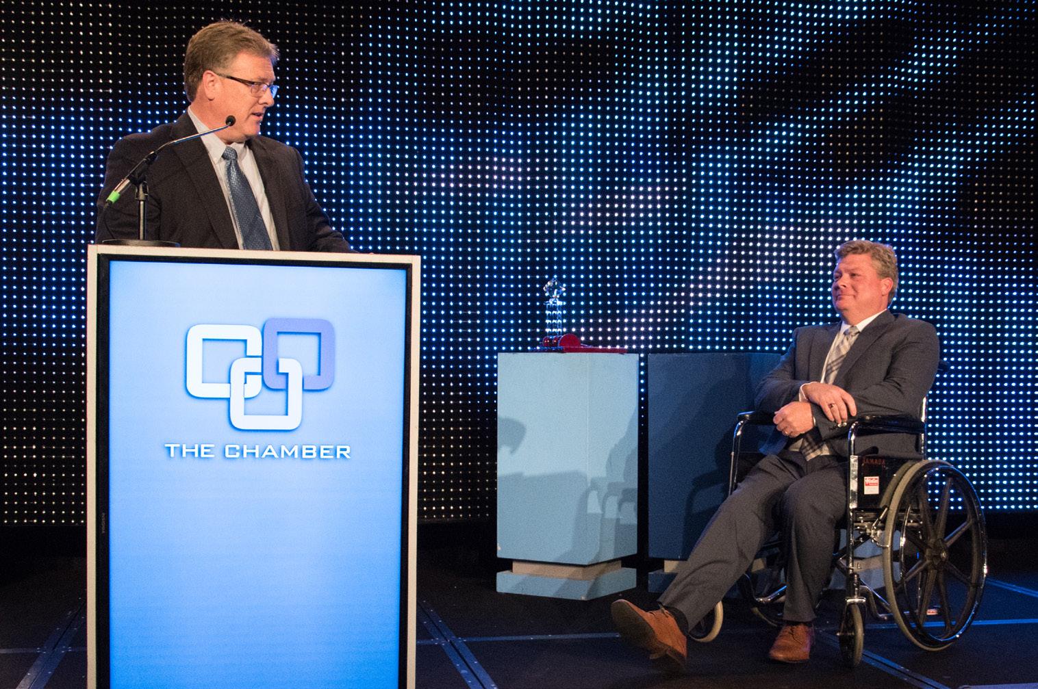 Roger Gilbertson accepted the Legacy Leader award with an introduction from former Fargo mayor Bruce Furness