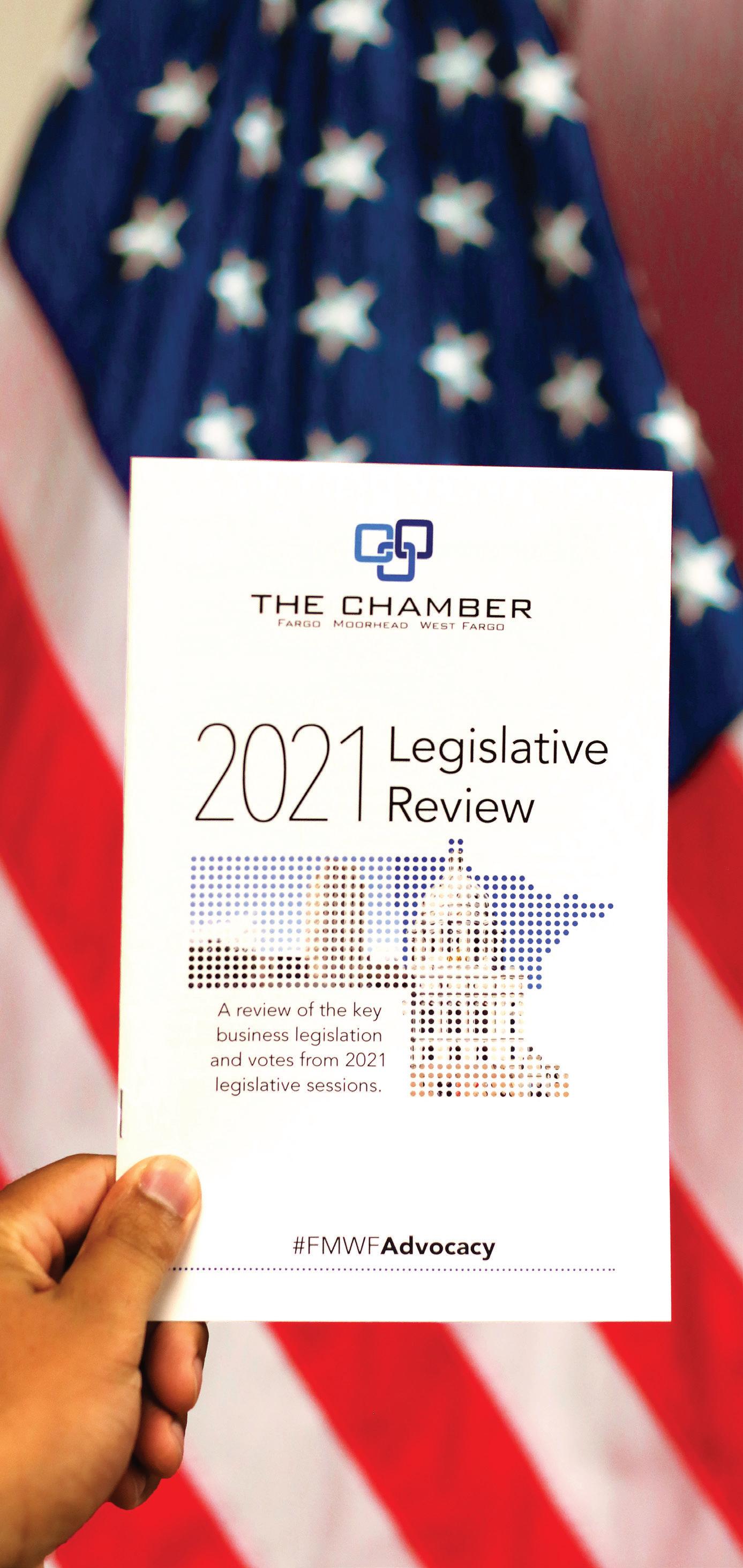 We are excited to bring the community a new publication of our public policy and advocacy work – a Legislative Review. This resource provides an overview of the key business legislation that The Chamber advocated for during the 2021 legislative sessions in both Minnesota and North Dakota, as well as how our local Cass and Clay County legislators voted on the legislation. As we more publicly hold our elected officials accountable for their votes through this resource, we also intend for it to serve as public appreciations for those who were aligned on so many critical business issues.