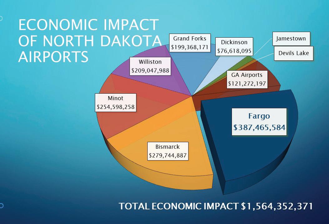 • All airports in ND have an estimated $1.56 billion economic impact. Fargo’s is over $378 million.