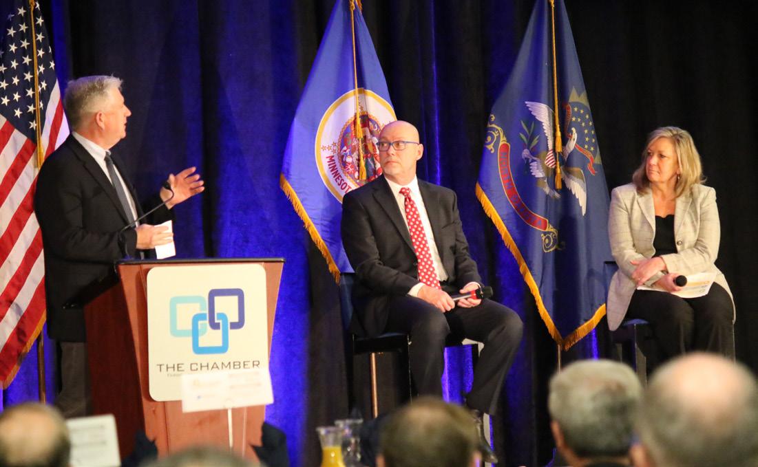 Bill Blazer of the Minnesota Chamber of Commerce opened the event. He discussed the state chamber’s four main priorities: business tax relief, creating health care options, stopping new workplace mandates, and transportation investments. All saw success except for passing Uniform State Labor Standards.