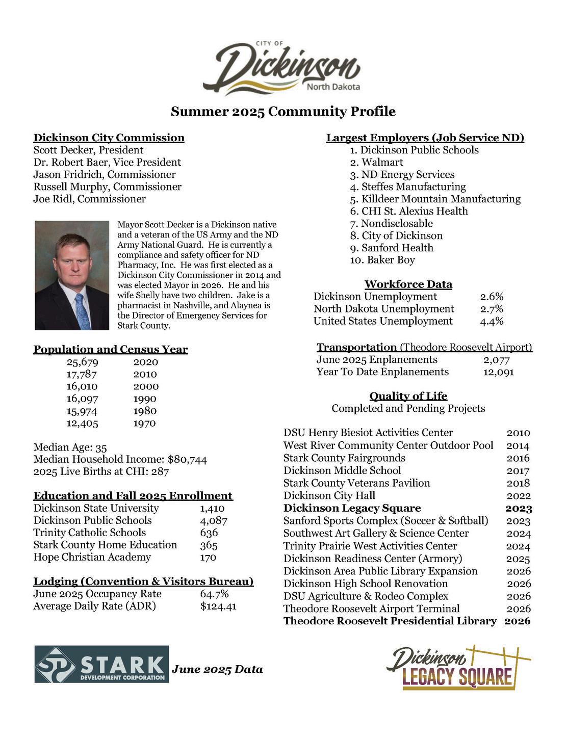 Chairman, ND Education Fact Finding Commission; SCORE Mentor; Board, TMI; Board, Badlands Crime Stoppers; Past, Dickinson Rural Fire Department and Rescue Squad; Dickinson Volunteer Fire Department; St Patrick’s Catholic Church Married (Danita); 3 children Senate since 2023