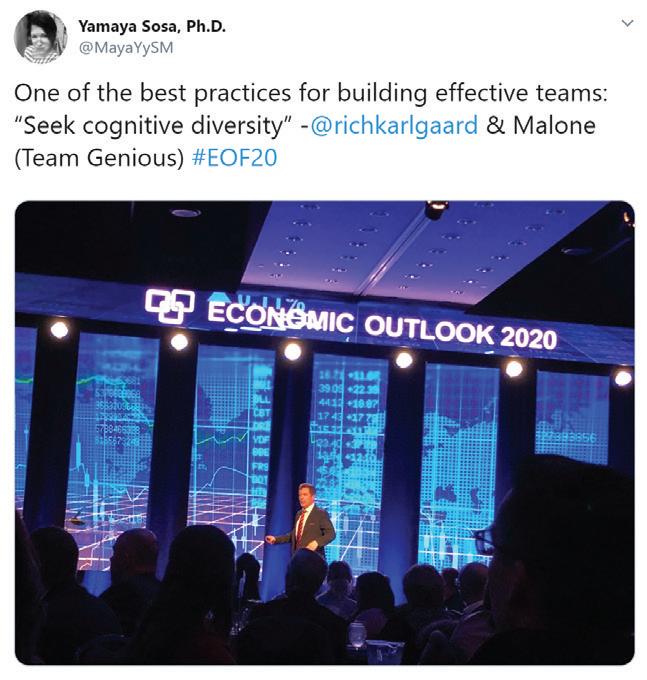 He touched on culture and teamwork in the workplace, providing a few best practices that included seeking cognitive diversity and identifying our Tom Bradys of workforce that might be lower in a draft but can develop into champions.