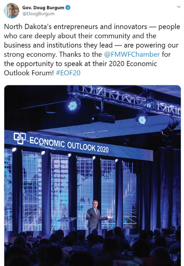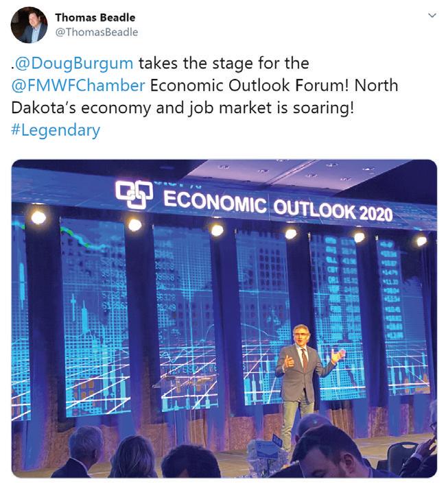 North Dakota Governor Doug Burgum also took the stage at the event, speaking about the strength of the state. Burgum mentioned the various national lists that places Fargo in top spots for best place to live and work, as well as our broadband, noting that ND is one of the most connected states in the nation. He also touched on various factors impacting the economy, from technology to energy and the importance of attracting and growing a qualified workforce. He estimates the state has a record 30,000 available jobs currently.