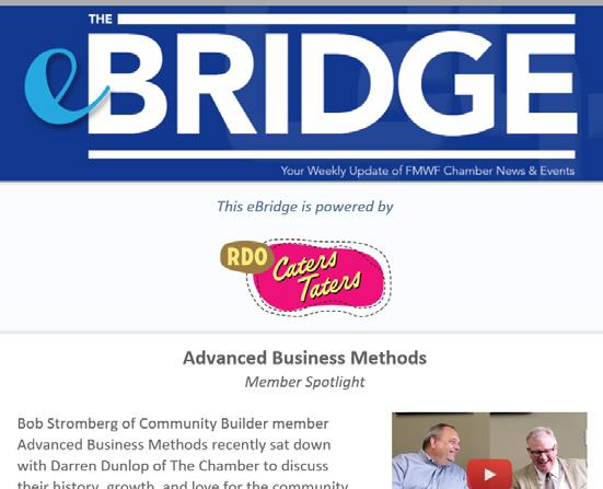 The Bridge is The Chamber’s flagship communication tool and is delivered to all Chamber members and the greater FMWF community every other month. This is your go-to-stop for the most timely news, stories, updates, events, initiatives, and more, happening in the FMWF area. The magazine is distributed in print form and digitally.