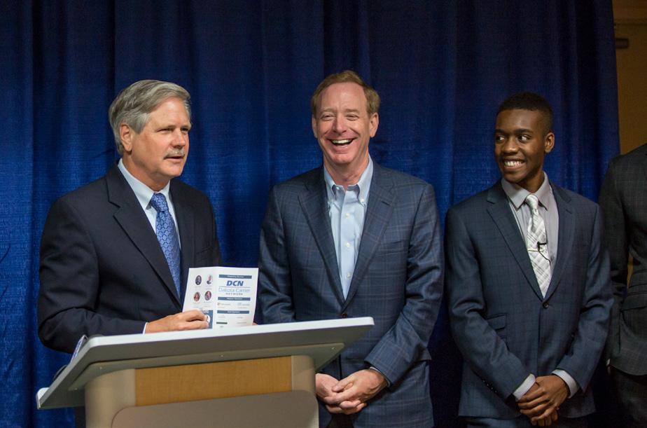 Next up was a keynote from Microsoft’s new company-wide president Brad Smith, who shared a fascinating look at the growth of technology historically and how it brought it to where we are today. He offered a glimpse into how Microsoft is leading the way in making the Internet more accessible around the world. This includes a major data center in Pennsylvania that is larger than NDSU’s campus, and a giant fiber optic cable that will connect all of us across the world.
