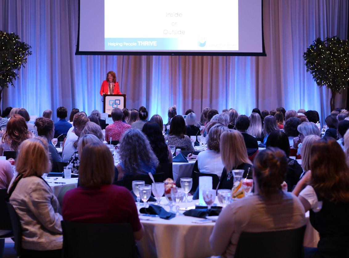 1 - 3 Jessica Thomasson of Lutheran Social Services spoke to a Women Connect crowd about courage and finding your voice in a noisy world. Thanks to attendees, we donated 284 school supplies to United Way!