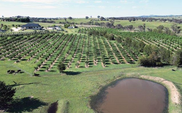‘Terran Grove’ offers a blend of peaceful rural living and a productive olive grove. 5 bed farmhouse with large kitchen and open plan living • 2,800 olive trees, producing award-winning Terran Extra Virgin Olive Oil • 3 dams • 2 large Colorbond sheds • Multiple paddocks with quality fencing • Automatic system for olive grove, netted orchard with fruit and nut trees, and a small vineyard growing chardonnay and merlot. Just 222 km* from Canberra and 344 km* from Sydney, between Cowra (36 km*) and Grenfell (34 km*) Ideal retreat or business . *approx. 5 1 6