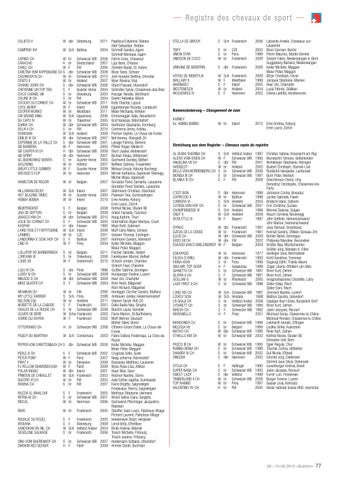 CAPINO CH W CARACHO H CAREL CH W CARETINA VOM KAPPENSAND CH S CASANOVA N CH W CENTO II W CHANEL XXXIV CH S CHEYENNE QH TOP TEN S COCO CHANEL VIII S COLINE III CH S COOCKY DU CORNAT CH W COOL BERRY W COOPER WORKS W CW GRAND KING W DA CAPO IV W DAREK CH W DELIA II CH S DONOVAN W EMILIO VI CH W ESPIONNE DE LA TAILLE CH S GB BARBERA W GB CASPER N CH H GB SPIRIT W GC BUENOWHIZ BONITA S GOLDKING W GREAT LITTLE GUNNER W GROSSO’S FLIP W
