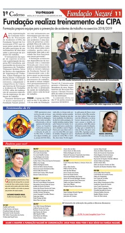 nova representação da Comissão Intern a d e P re v e n ç ã o de Acidentes (CIPA) da Fundação Nazaré de Comunicação (FNC) que tomará posse ainda no mês de julho participou de um treinamento de dois dias sobre a prevenção de acidentes de trabalho. O treinamento da equip e d e c i p e i ro s o c o r re u com a participação da empresa RR Consultoria, por intermédio da técnica em Segurança do Trabalho, Thayanne Kethlen Néris da Rocha e do engenheiro de Segurança do Trabalho, Edson Rodrigues da Rocha Júnior. A formação envolveu temas sobre a estrutura, composição e competência da Comissão Interna de Prevenção a Acidentes de Trabalho (CIPA), além da explanação de assuntos específicos da segurança no ambiente de trabalho. Thayanne declarou que “é muito importante a Fundação Nazaré promo-