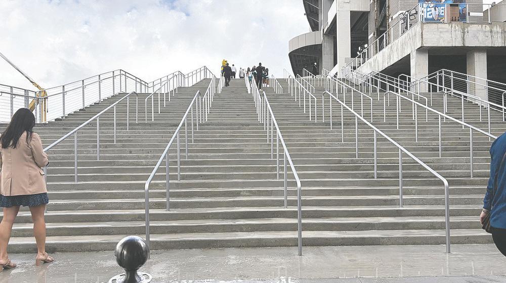 The 66 steps will be the first of four grand staircases around the stadium, each with an escalator alongside it. Gate 1 is at the southwest corner of EverBank near Lot J and Daily’s Place.