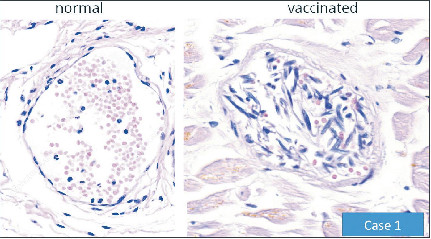 ■ Histopathologic analyses (the staining of tissues to show disease states) show clear evidence of vaccine-induced autoimmune-like pathology in multiple organs; spike protein-caused erosion of the blood vessels, heart and lymphatic vessels; amyloids in multiple tissues; unusual, aggressive cancers; and atypical “clot” formations.