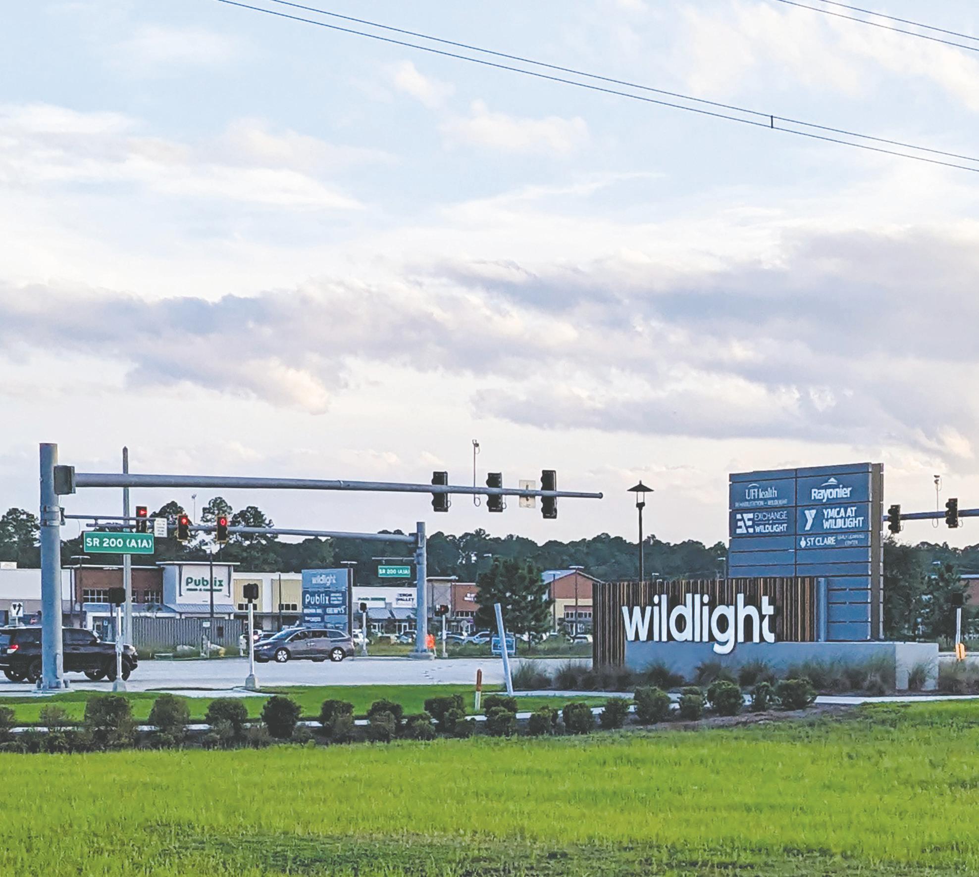 The entrance to the master-planned Wildlight community along Florida 200/A1A in Yulee. Wildlight was conceptualized with input from Nassau County in 2007. Ground broke 2016 on Rayonier’s new headquarters and Wildlight Elementary School there.