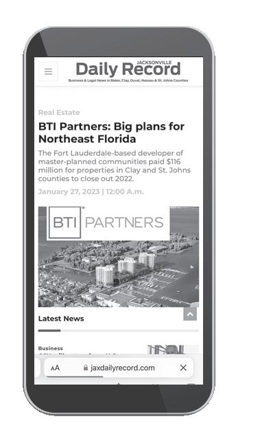 DISPLAY & ONLINE ADVERTISING: Call 904-356-2466 or email advertise@ JaxDailyRecord.com. Deadline for display advertising is 3 p.m. Thursday.