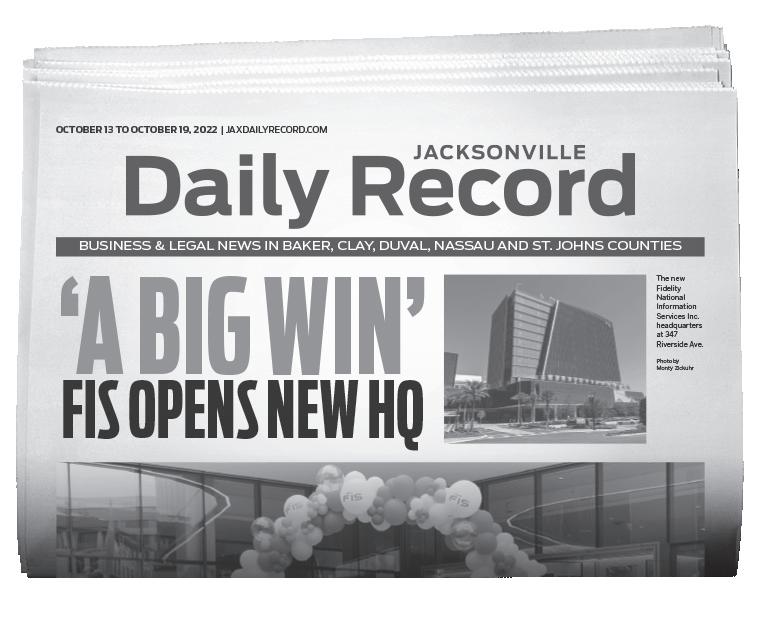 The Jacksonville Daily Record is available by mailed subscription and at newsstands. Subscribe online at jaxdailyrecord.com/subscribe or contact our subscription department by phone at 877-231-8834 or via email at subscriptions@jaxdailyrecord.com