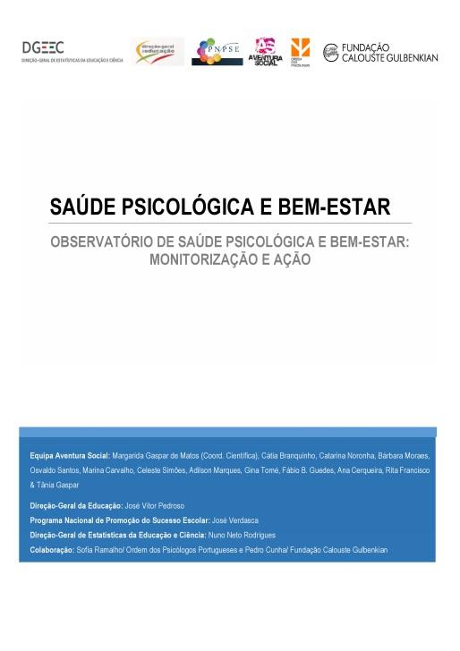 Este estudo resultou de um trabalho de parceria entreaDireção-GeraldeEstatísticasdaEducação e Ciência, Direção-Geral da Educação, Programa NacionaldePromoçãodoSucessoEscolar,Equipa Aventura Social/ ISAMB, Universidade de Lisboa, Ordem dos Psicólogos Portugueses e Fundação CalousteGulbenkian.