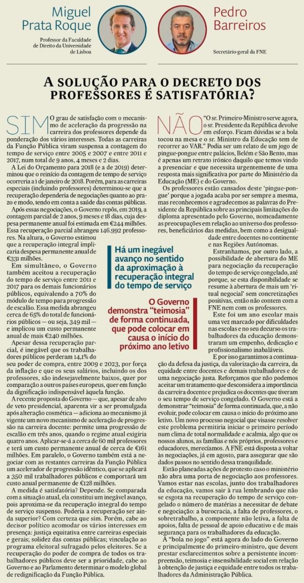 P.14, P.15 PÚBLICO | OPINIÃO DE PEDRO BARREIROS - FRUSTRAÇÃO DA ESPERANÇA DOS PROFESSORES