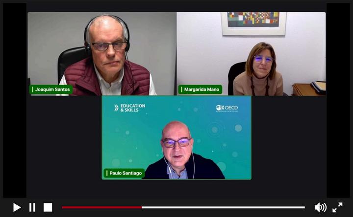 O representante da OCDE, que participou via zoom em direto de Paris, abriu o debate centrando-se nos desafios e prioridades na perspetiva da sua organização para a transformação educativa