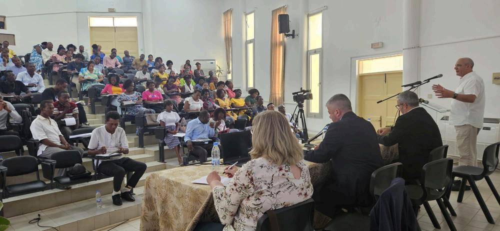 Com efeito, o primeiro dia desta ação de solidariedade foi constituída por uma “jornada pela educação”, a qual se concretizou com um seminário que permitiu uma reflexão amplamente participada por dezenas de ativistas do SINPRESTEP, sobre as dimensões de uma educação de qualidade e sobre o papel construtivo do movimento sindical para uma educação de qualidade Todos os membros da delegação portuguesa tiveram oportunidade de contribuir para esta reflexão que serviu de oportunidade para a identificação de inúmeros problemas que marcam o sistema educativo são-tomense e a própria ação e organização sindical neste país.