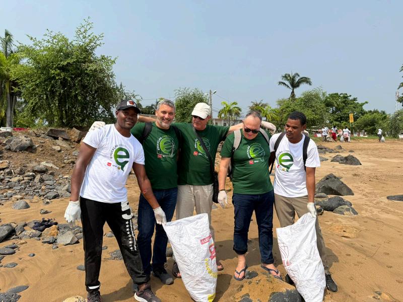 O terceiro dia integrou uma ação de promoção da educação ambiental, com a participação de dezenas de educadores e professores de S Tomé, e que consistiu numa ação de limpeza de praias da cidade de S Tomé, de que resultou a recolha de mais de quatrocentos quilos de lixo