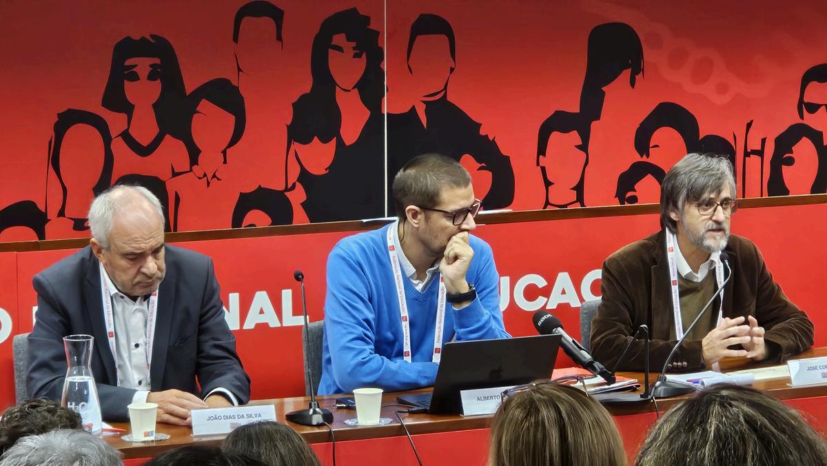Alberto Veronesi começou por falar de uma crise sem precedentes na carreira dos professores, urgindo “A valorização da carreira docente, como caminho para reter talentos e salvar a escola pública”. Este diretor mencionou um défice de 19 mil professores até 2035, um corpo docente envelhecido, com 54% dos que chegam recentemente à profissão a dizer que não pretendem continuar, o que coloca o sistema educativo num colapso iminente.