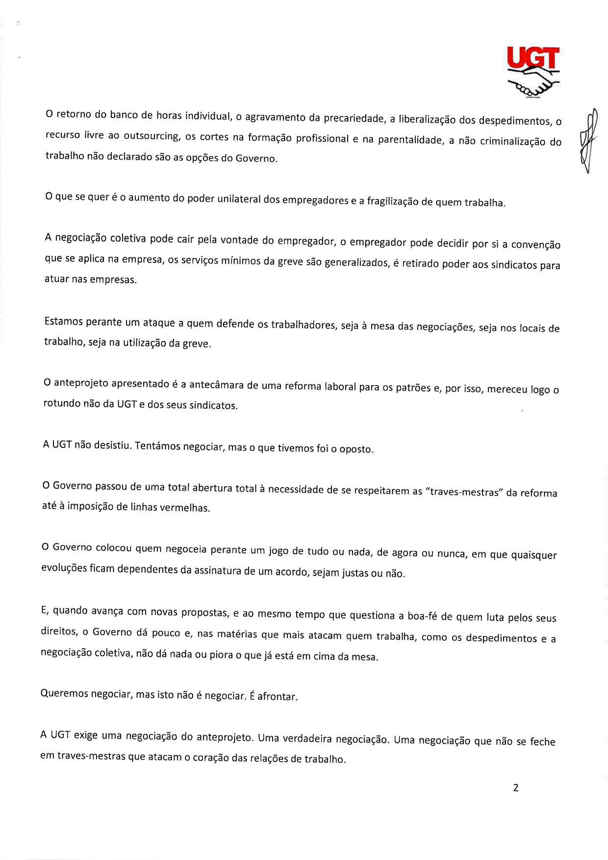 Estas matérias foram colocadas em cima da mesa pela UGT e ignoradas pelo Governo.
