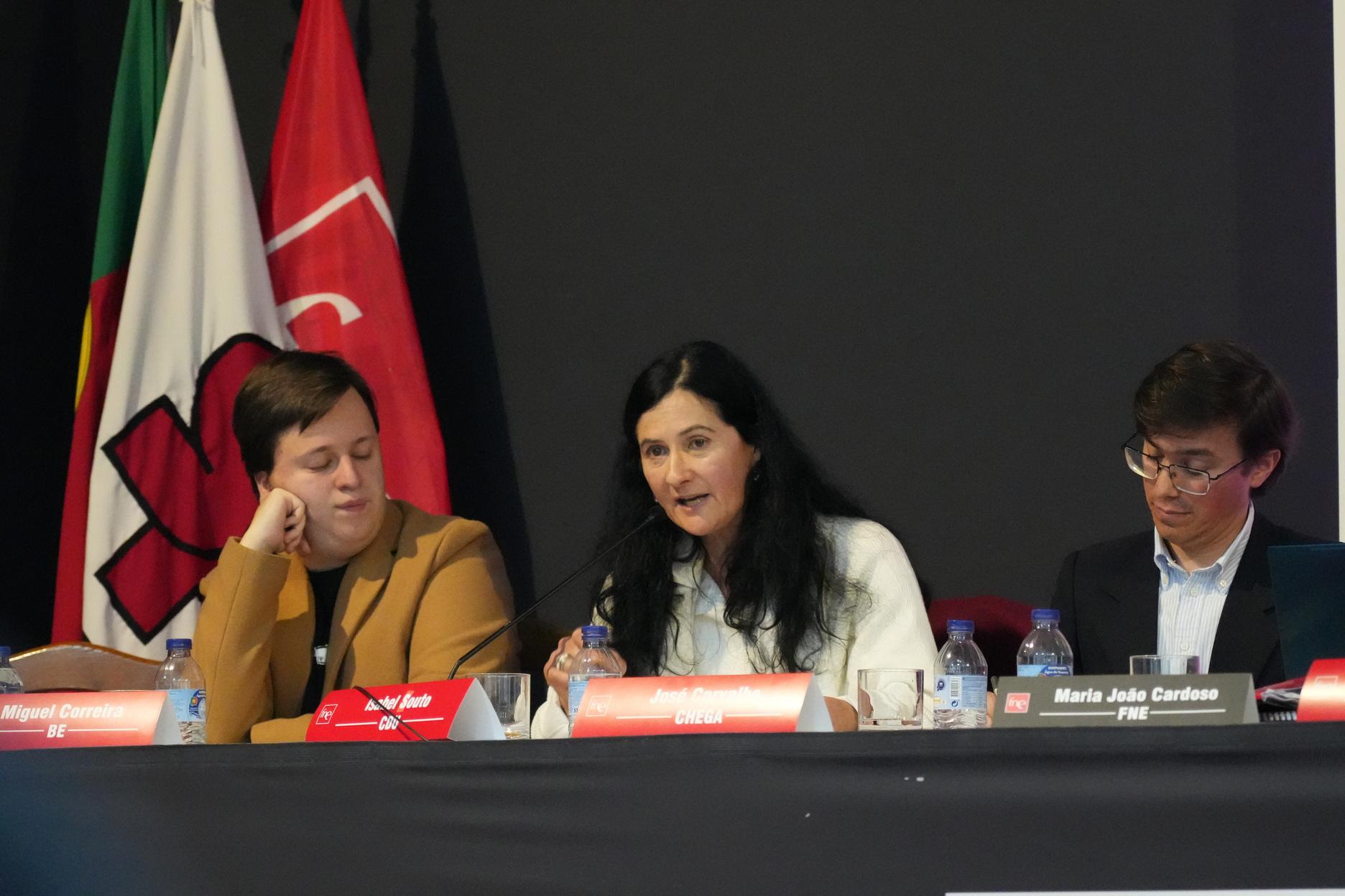 Fechado o espaço interventivo para as apresentações de cada um dos representantes dos partidos políticos convidados, abriu-se tempo para questões levantadas pelo público presencial e online, composto por dirigentes da FNE e dos seus sindicatos, docentes e pessoal de apoio educativo e inscritos no evento.