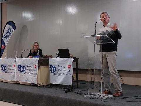 Na sessão de abertura, foram abordadas as questões de natureza político-sindical do momento, de valorização e dignificação da carreira docente, pela Presidente do SDP Sul, Josefa Lopes, e pelo Secretário-Geral da FNE, Pedro Barreiros.