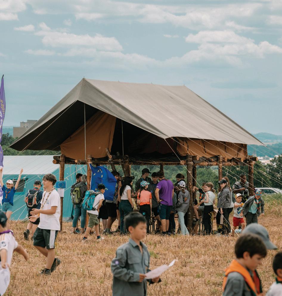 Après une nuit relativement courte pour tous les participants, les Beavers et Louvetaux ainsi que les invités ont été accueillis sur le site, marquant ainsi le début officiel du Pow-Wow 2024. Après la