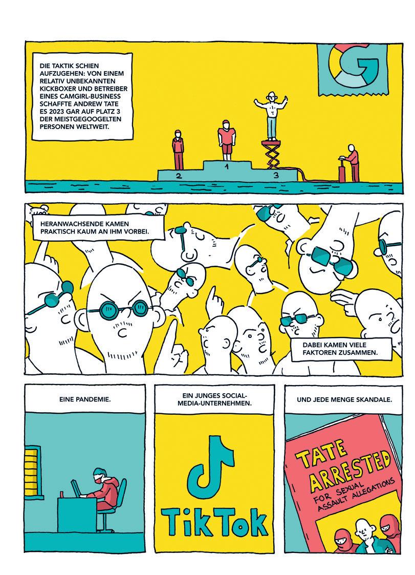 In mehreren Kapiteln beleuchtet der Sachcomic die vielfältigen Facetten dieses Themas: von den historischen Wurzeln unserer Männlichkeitsbilder in der Antike ü ber das Mittelalter bis hin zu seinem aktuellen digitalen Gewand in Form von Manfluencern, Gymbros, Podcastern und Alt-Right-Agitatoren.