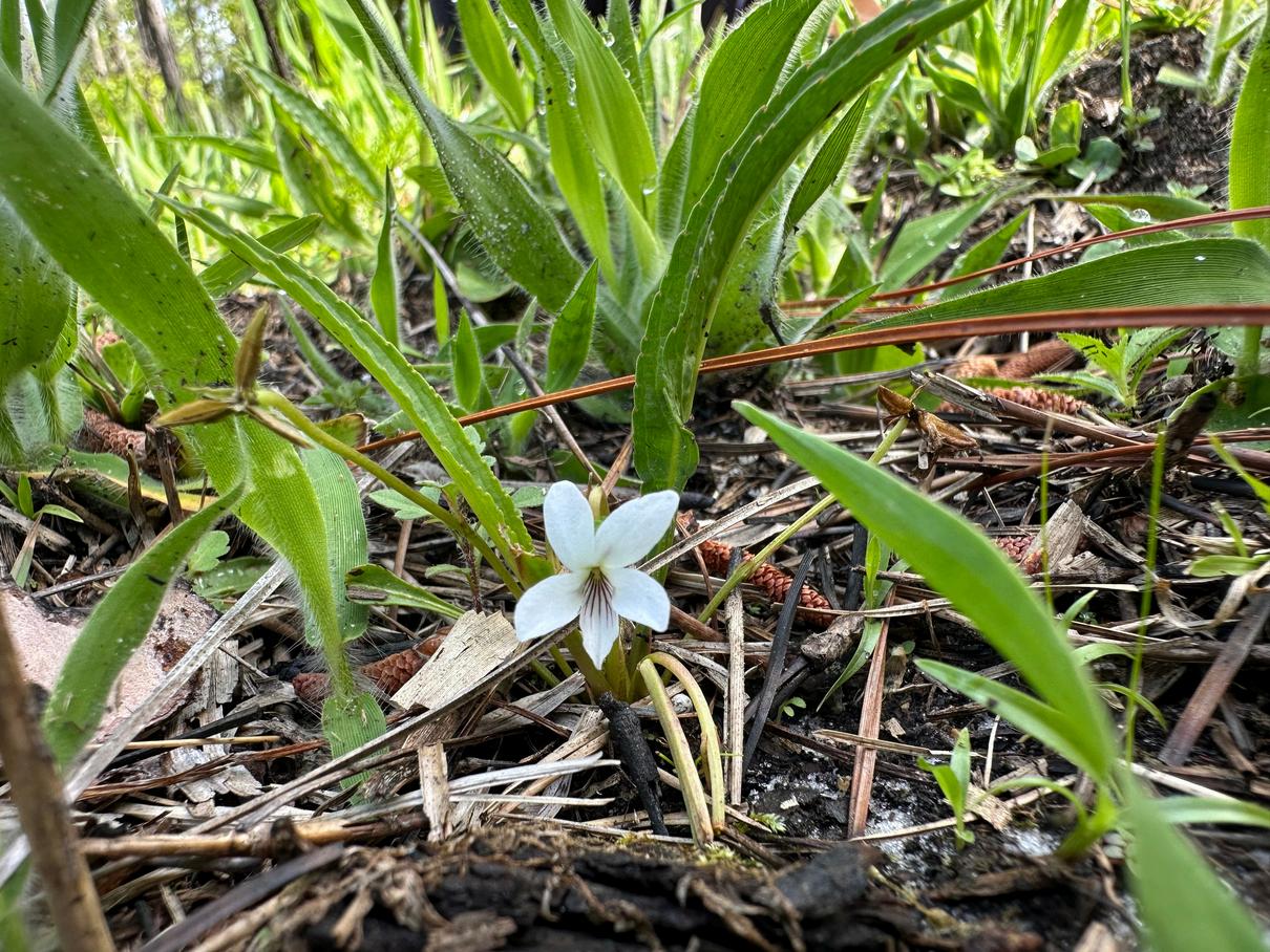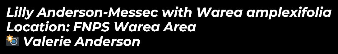 In February, Lynda Davis and Susan Carr met onsite with Chad Allison and Kai Sucsy to review the Land Management Plan. During the visit, they observed an increased population of Warea amplexifolia on the property, likely a result of earlier prescribed burns, hardwood management, and seeding efforts conducted by Juliet Rynear and Deborah Curry