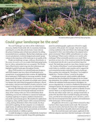 Since the award showcases native plants, applicants for the different categories must show that their landscape is 75% native CONTINUED ON PAGE 15