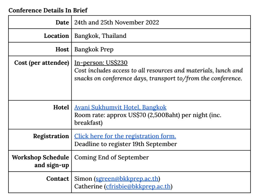 24-26 Nov 2022 CPD Leaders Conference (Hybrid) Bangkok Patana School, Bangkok 23