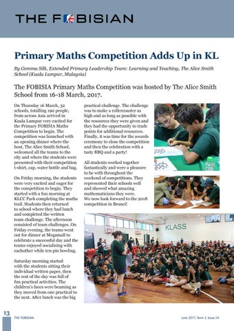 Primary Maths Competition Adds Up in KL By Gemma Silk, Extended Primary Leadership Team: Learning and Teaching, The Alice Smith School (Kuala Lumpur, Malaysia)