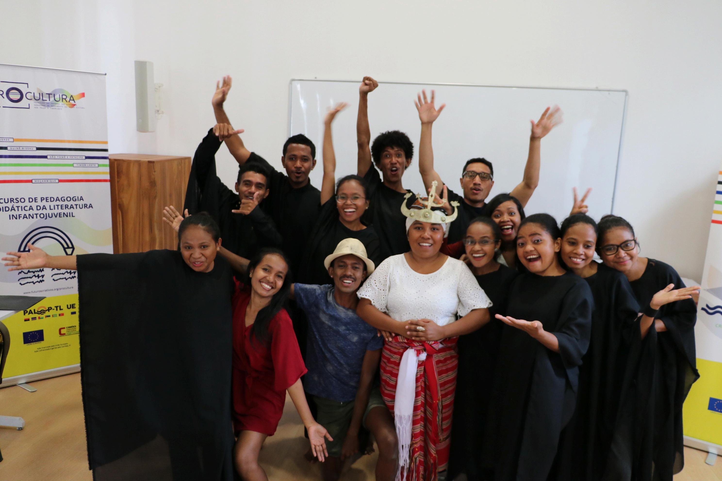 Nesteâmbito,muitonostemincentivado autorescomooquenesteanocelebramos ocentenáriodoseunascimento,José SaramagoAobraAMaiorFlordoMundo foidramatizadaeapresentadaemvários espaçosdacidadedeDíli,comooArquivo &MuseudaResistênciaTimorense,no âmbitodasJornadasPedagógicas(2018), naFundaçãoOriente,nascelebraçõesda FeiradoLivro(2020),naEmbaixadade PortugalemDíli,noâmbitodaatividade CaféLiterário.Esteano,muitonoshonraa participaçãonaleituraencenadade O ContodaIlhaDesconhecida.Nestaatividade participam, mais uma vez, como mediadores,estudanteseprofessoresda UNTL,numprocessodeformaçãopor partedosistema-interventor,paraque, numafaseposterior,hajacontinuidadedo projeto, multiplicando-o pelos vários municípios e que, a longo prazo, as melhorias sociais no campo educativo sejamumarealidade.
