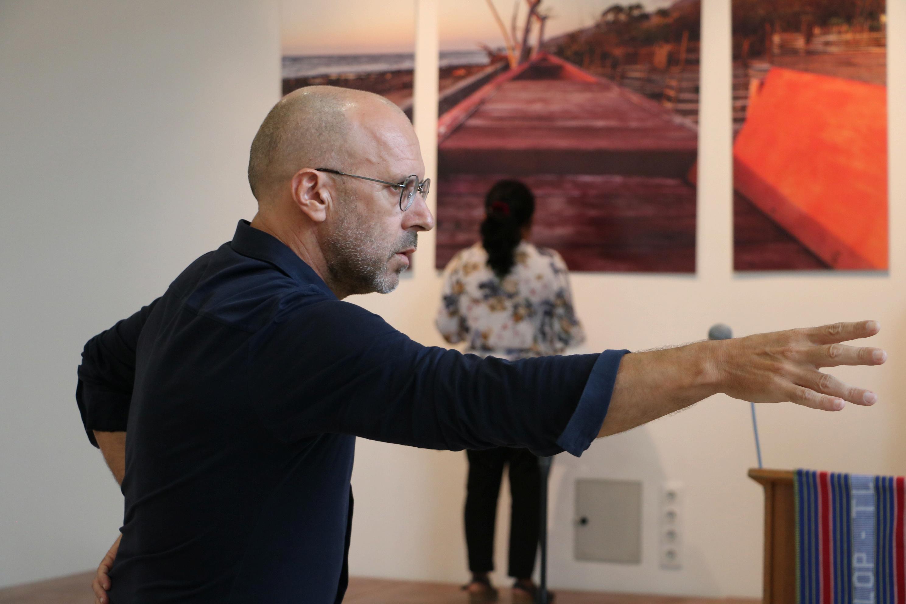 Aoserconvidadaparaparticiparnaleitura encenadadeOContodaIlhaDesconhecida, tiveoportunidadedeaprofundaromeu conhecimentosobreoúnicoNobelda literaturaportuguesa.Logonosprimeiros ensaios, a personagem da mulher da limpezafascinou-me.Talvezporissome tenhasidoatribuídoessepapel.Eaqui estou a representar essa figura que preferiusairdopaláciodoreieencontrara sua liberdade à procura da ilha desconhecida,oquequerdizeràprocura dadescobertadesimesma.