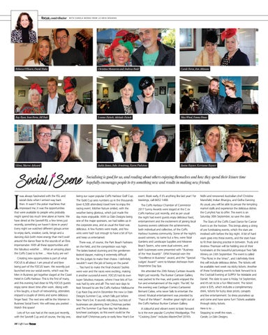 event. Book early, if it’s anything like last year! For bookings, call 6652 1488. The Coffs Harbour Chamber of Commerce 2017 Sunny Awards were staged at the C.ex Coffs Harbour just recently, and as per usual the night had event guests enjoy delicious food, entertainment and the excitement of joining local business owners celebrate the achievements, both individual and collective, of the Coffs Harbour business community. Some of the night’s award winners, to name but a few, were Total Gardens and Landscape Supplies and Moonee Beach Tavern, who were dual winners, and both businesses were presented with “Business of the Year Awards”. DFM Financial won the “Excellence in Business” award, and the “Special Judges’ Award” went to Marion Atcheson from Dreamtime Day Spa.