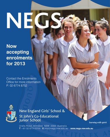 NEGS Now accepting enrolments for 2013 Contact the Enrolments OfďŹ ce for more information P: 02 6774 8752