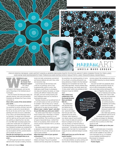 PROUD BIRPAI WOMAN AND ARTIST ANGELA MARR-GROGAN CHATS TO FOCUS ABOUT HER CONNECTION TO THE LAND AND HOW SHE REPRESENTS THIS THROUGH HER INTRICATELY BEAUTIFUL AND TRADITIONAL PAINTINGS …