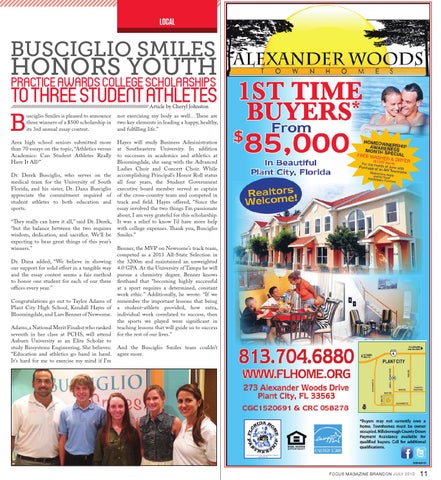 Dr. Derek Busciglio, who serves on the medical team for the University of South Florida, and his sister, Dr. Dana Busciglio appreciate the commitment required of student athletes to both education and sports. “They really can have it all,” said Dr. Derek, “but the balance between the two requires wisdom, dedication, and sacrifice. We’ll be expecting to hear great things of this year’s winners.” Dr. Dana added, “We believe in showing our support for solid effort in a tangible way and the essay contest seems a fair method to honor one student for each of our three offices every year.” Congratulations go out to Taylor Adams of Plant City High School, Kendall Hayes of Bloomingdale, and Lars Benner of Newsome. Adams, a National Merit Finalist who ranked seventh in her class at PCHS, will attend Auburn University as an Elite Scholar to study Biosystems Engineering. She believes: “Education and athletics go hand in hand. It’s hard for me to exercise my mind if I’m