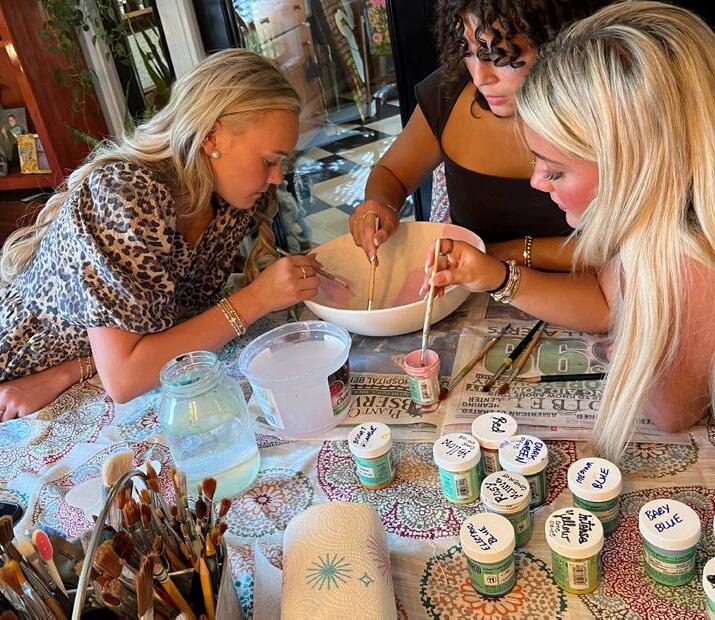At her home, Lesli guides the Strawberry Queen and Court and Little Miss Plant City and Court as they paint a bowl for auction as well. The Queen’s bowl design always centers around strawberries, while the LMPC bowl is inspired by the competition’s theme. The “Let’s Go Girls” bowl for 2025 features a disco-stylized strawberry wearing a pink cowgirl hat.