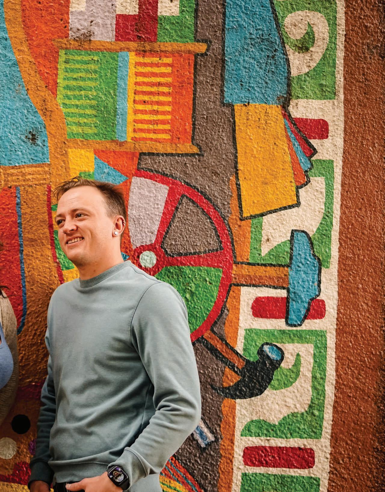 Created in 1993 by Dave Lowenstein, a Lawrence-based artist and muralist known for his collaborative community projects, this mural pays tribute to performing artists and communication mediums—which would now include a selfie. Given that theme, this is a perfect spot to capture an image of yourself with any of the three mural sections.