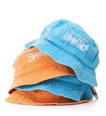 James Naismith (left) and Samantha Laflin sport the Lawrence Passports bucket hats outside of the DeBruce Center on the campus of the University of Kansas. Photograph by Carter Gaskins.