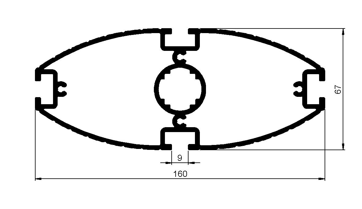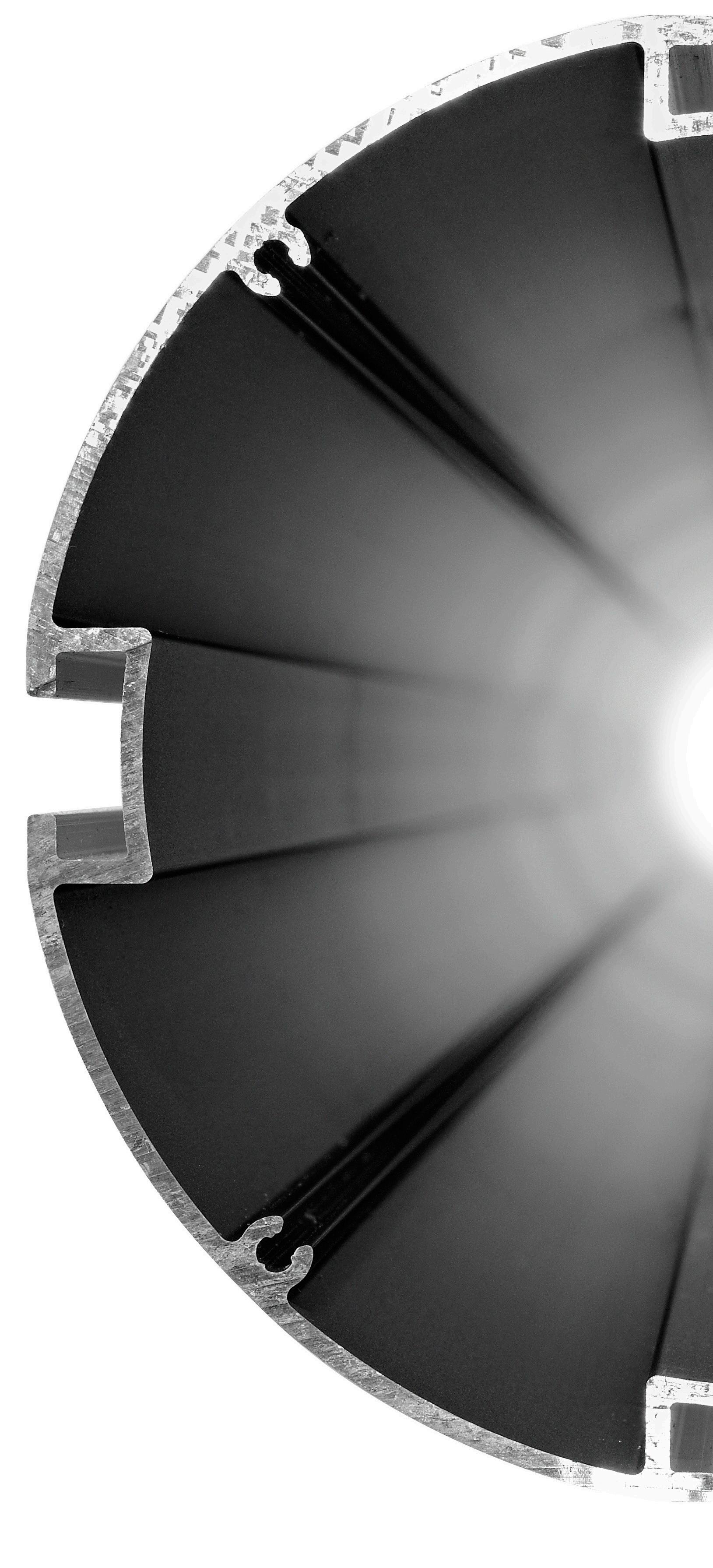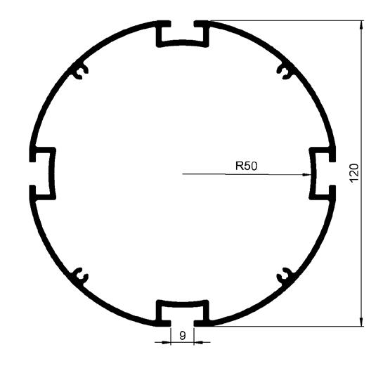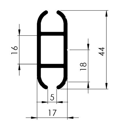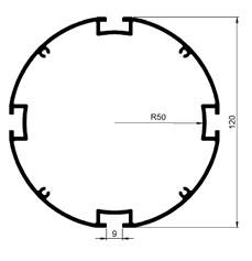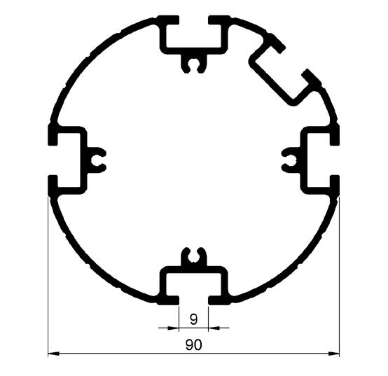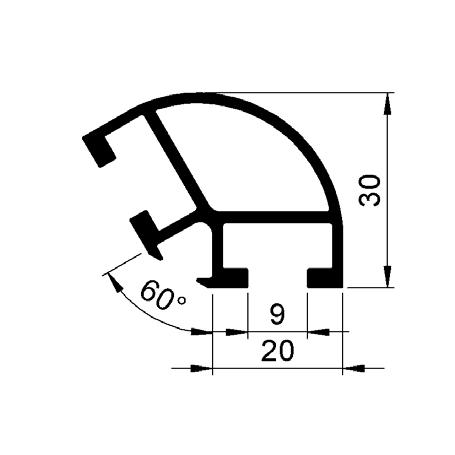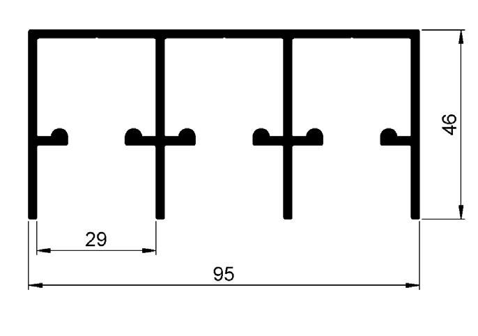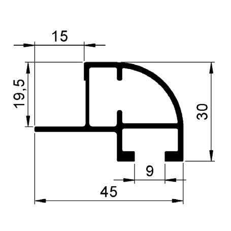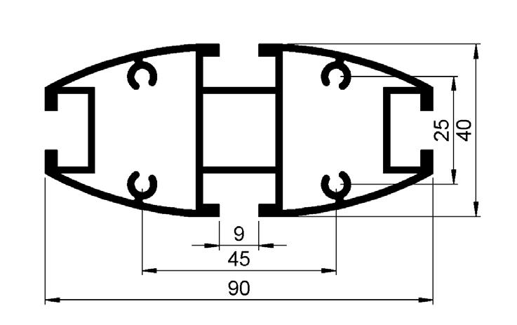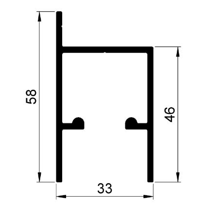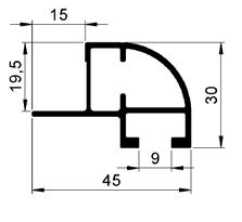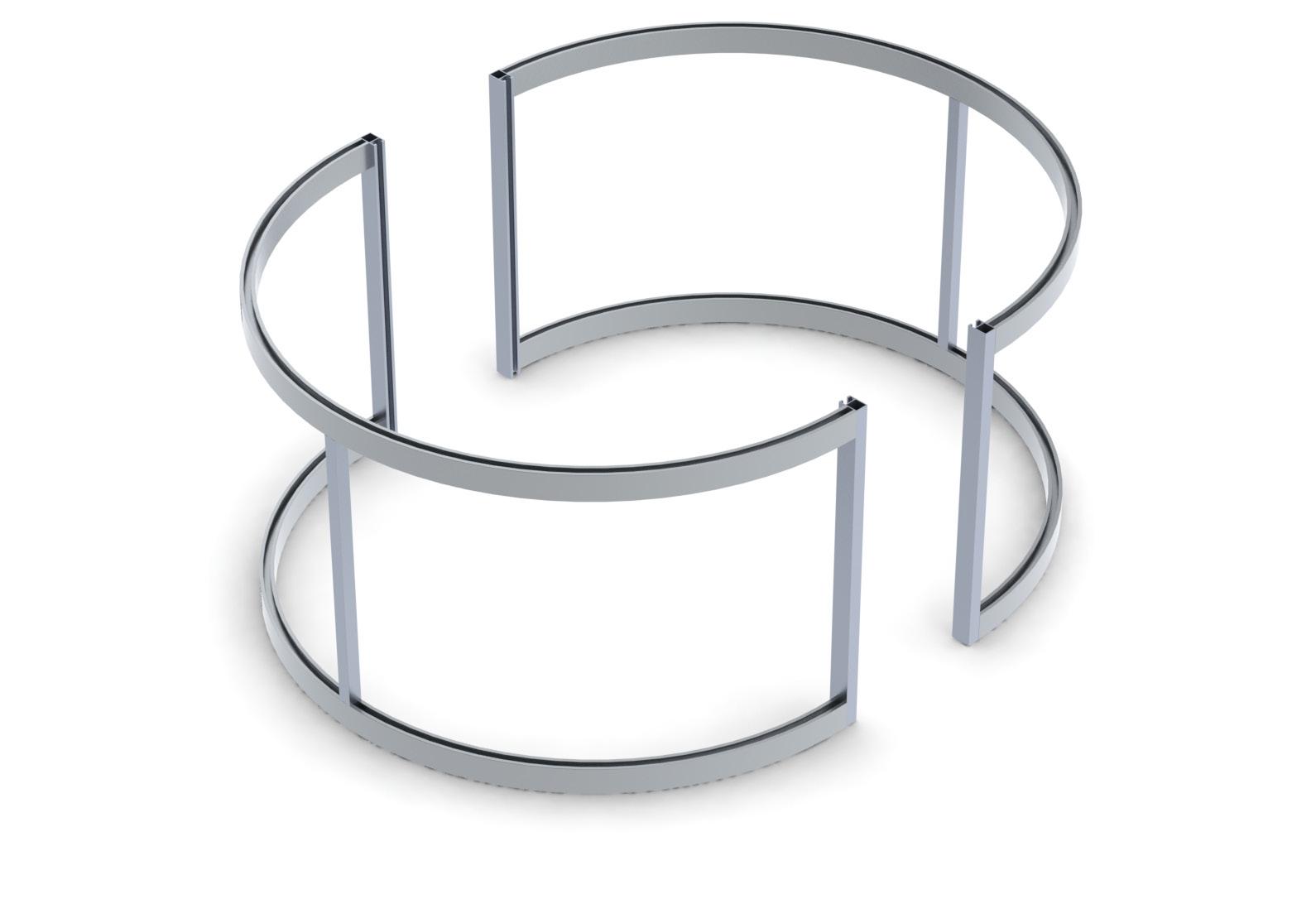 Standard, curved profiles: For any panel sitting between two uprights and two curved rails.