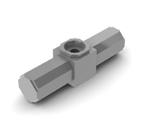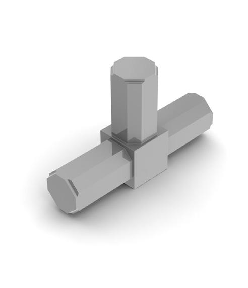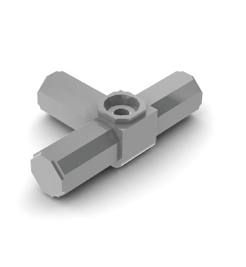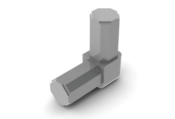 609QF - A tool free alternative to the 609, the grub screws are replaced with a spring loaded insert which locates the 609QF. Unlike the 609, no expansion occurs inside the profile, instead the connectors relies on the close fit tolerance between the profile and spigot to provide a secure join. Ideally suited to portable kits and frames being assembled by end users.