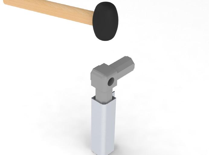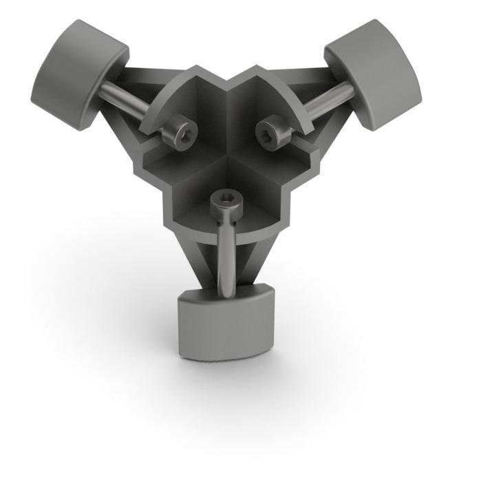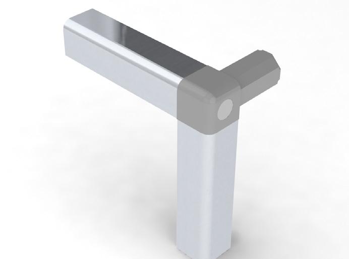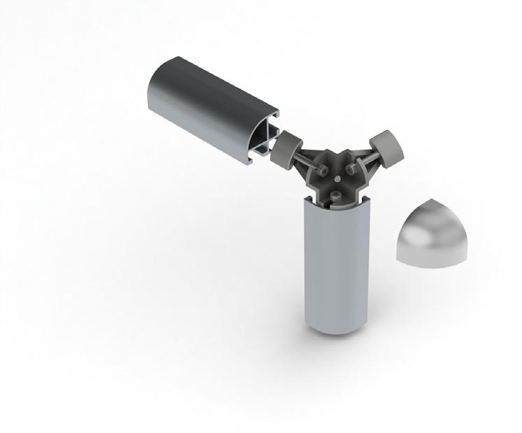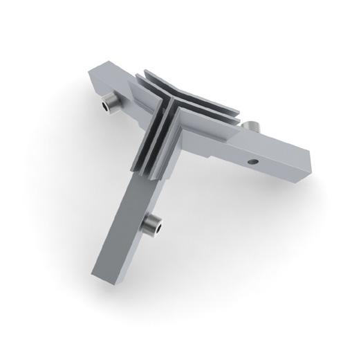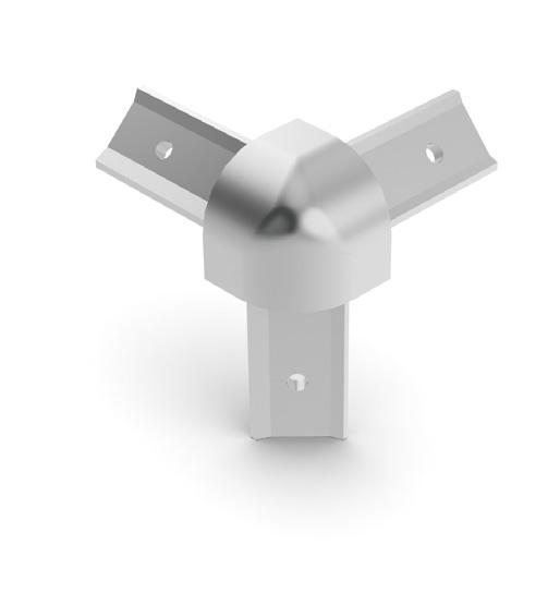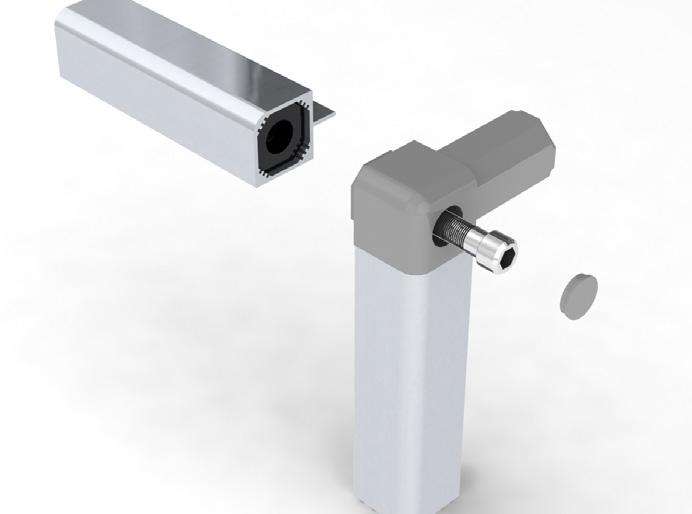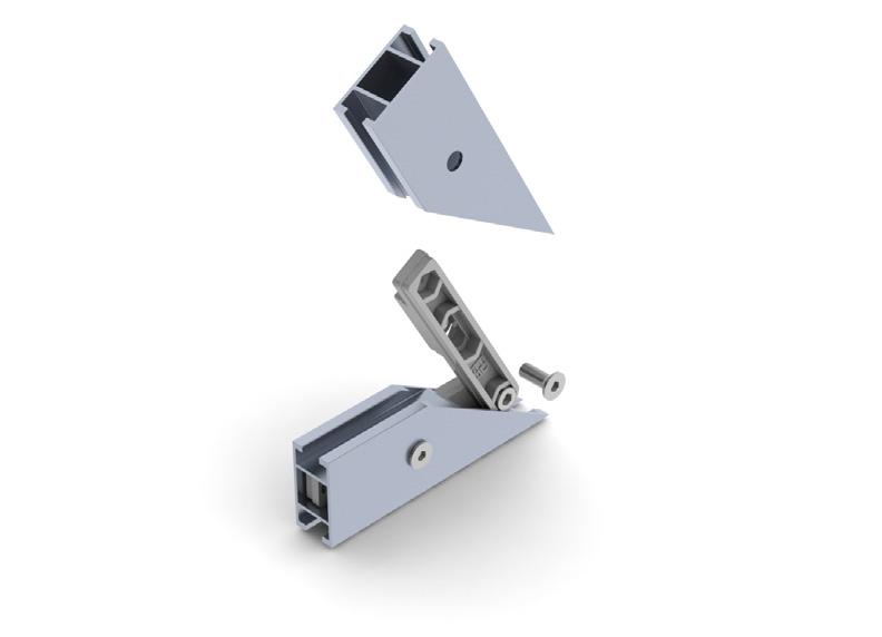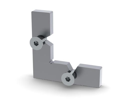 950 - Flex profiles sleeve over 950 universal corner coupling. By adjusting the position of the securing wedge along the arm of the coupling, a friction grip holds the profiles in place. The corner joint is completed by screwing or snap fitting a cap inposition, page 38