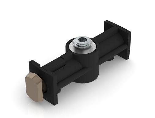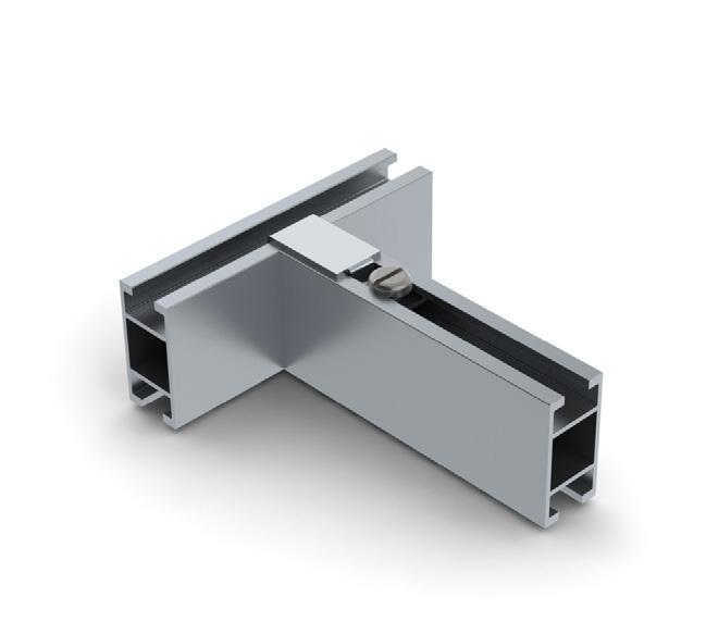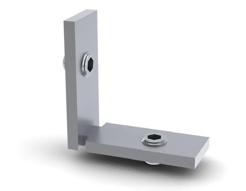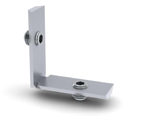 540 - Used where a rail meets on the side of another. The 540 secured with a grub screw and hook securely over the channel of the adjacent profile. Ideal for ceiling grids and bracing rails, page 34