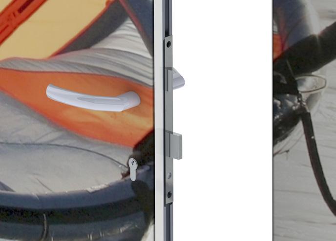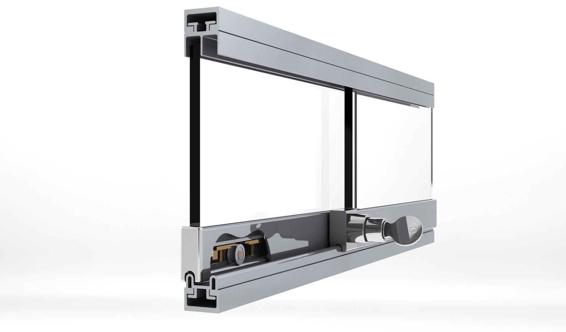 This is a method of fitting lockable sliding doors within FOGA framework. The doors slide on a nylon roller that sits on a bottom guide track providing smooth, stable movement. This set-up is best suit for use with 6mm panels.